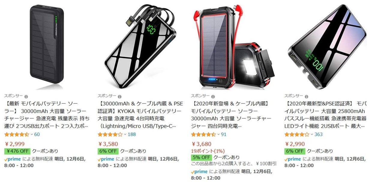 通常の検索結果だと、中国系の業者が販売する商品がズラッと並びますし、Amazonに広告を出してページの最上部に中華系の商品が表示されています。