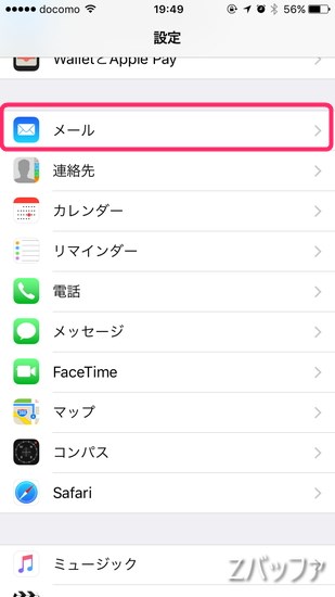 設定アプリを開いて、メールをタップします。