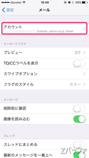 利用頻度の高いアプリとしてApple標準のメールアプリがあって、GmailにOutlook(Hotmail)、ヤフーメールといったウェブメールを送受信するのに使っています。