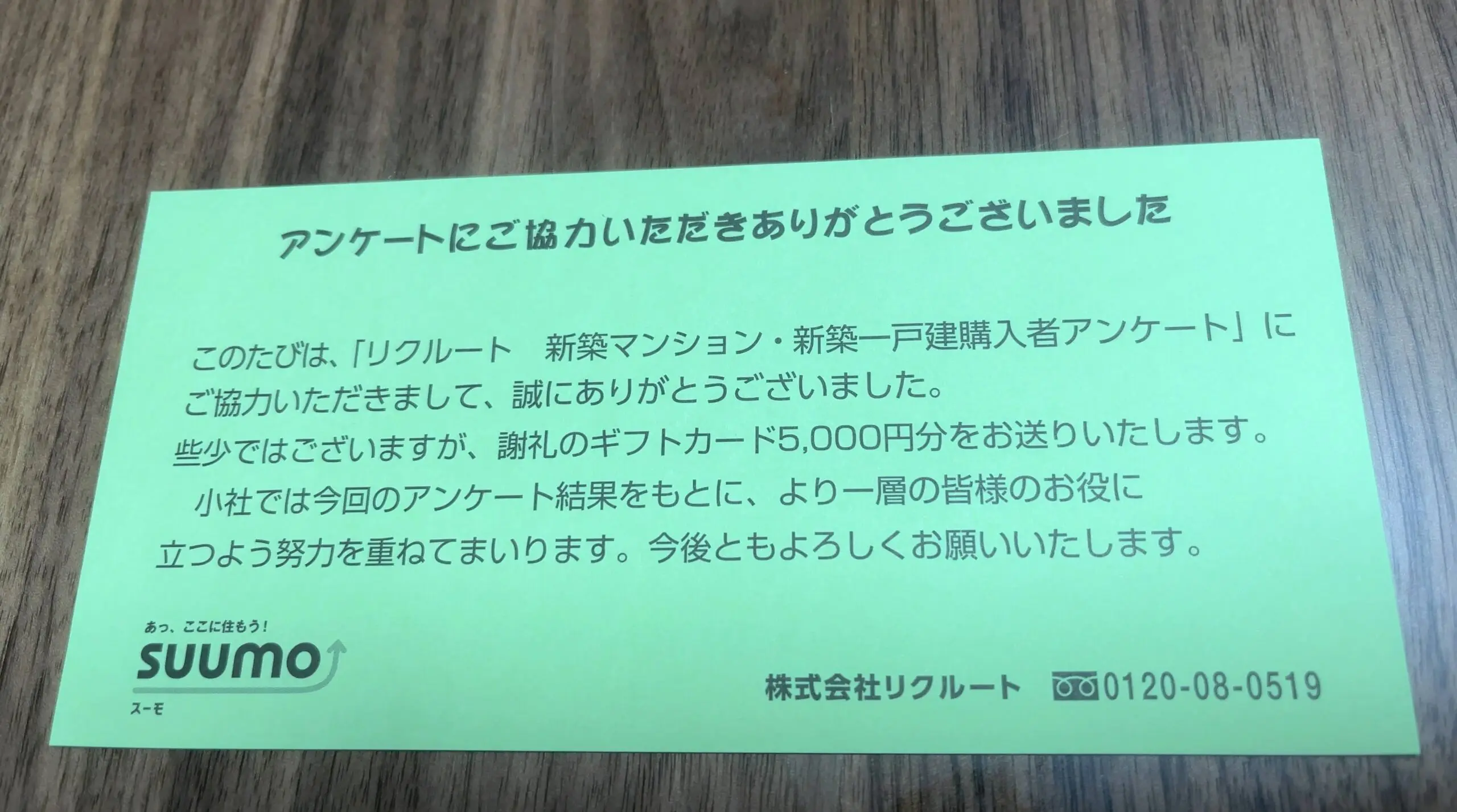 スーモ(SUUMO)の新築マンション・戸建て購入アンケートで本当に5000円貰えるか実際に試した感想